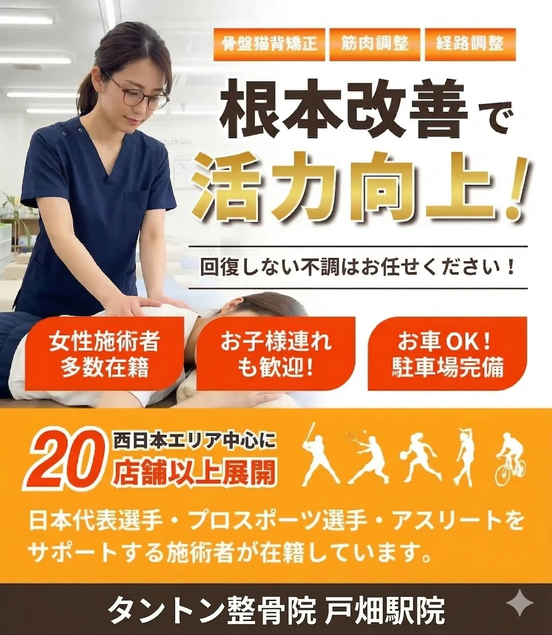 タントン整骨院 戸畑駅院では土曜日も20時まで営業しているため、仕事終わりの方や、部活終わりの学生さんも通いやすくなっております。なかなか治らない身体の痛みでお悩みの方は、お気軽にご相談ください。